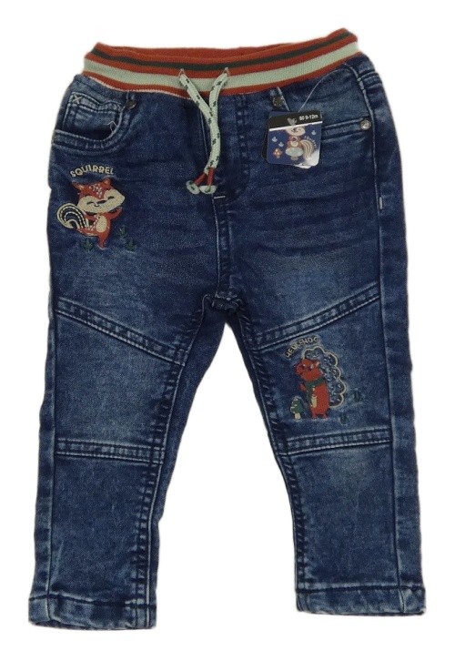 Nové - Tmavomodré teplákové skinny rifle s úpletovým pasem a zvířátky