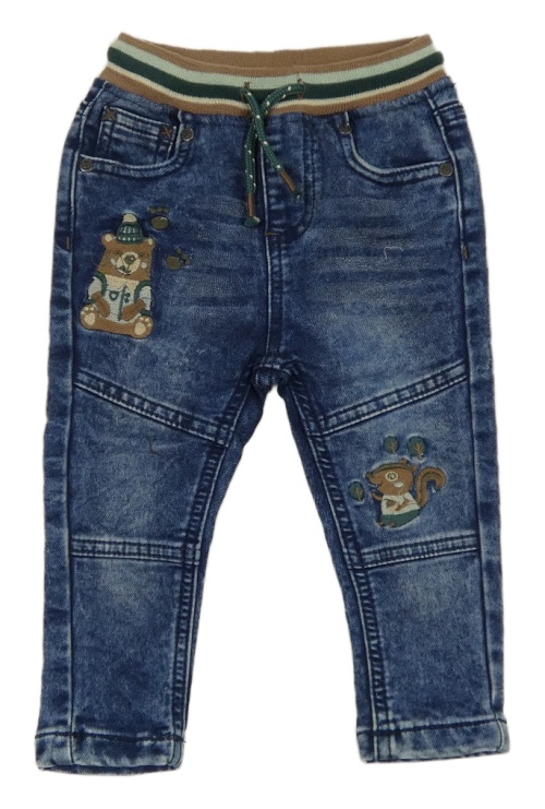 Tmavomodré teplákové rifle se zvířátky a pruhovaným pasem