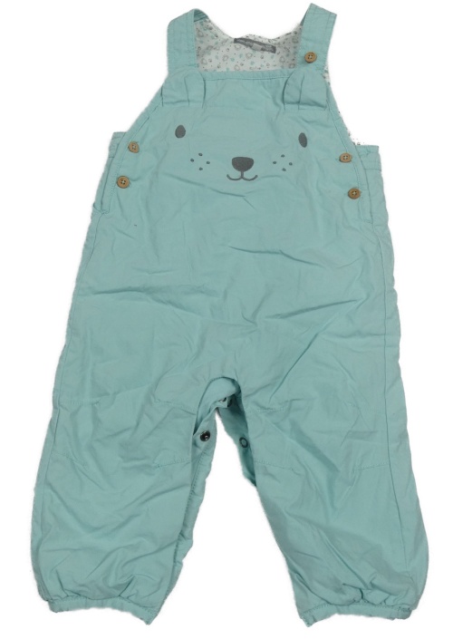Světlemodré plátěné zateplené laclové kalhoty s medvědem