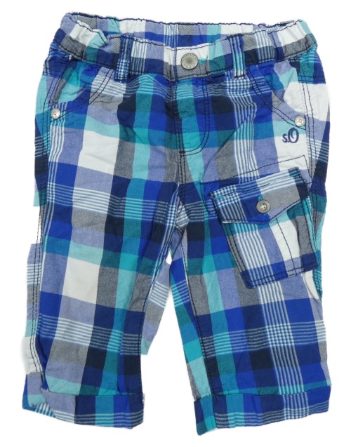 Modro-bílé kostkované plátěné crop kalhoty S. Oliver
