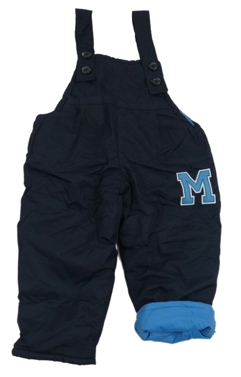 Tmavomodrjé šusťákové zateplené laclové kalhoty s písmenem