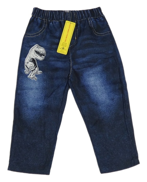 Nové - Tmavomodré kalhoty riflového vzhledu s dinosaurem Shein