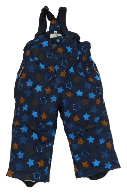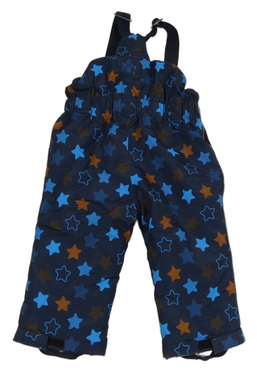 Tmavomodré šusťákové zimní oteplovačky s hvězdičkami a kšandami Topomini