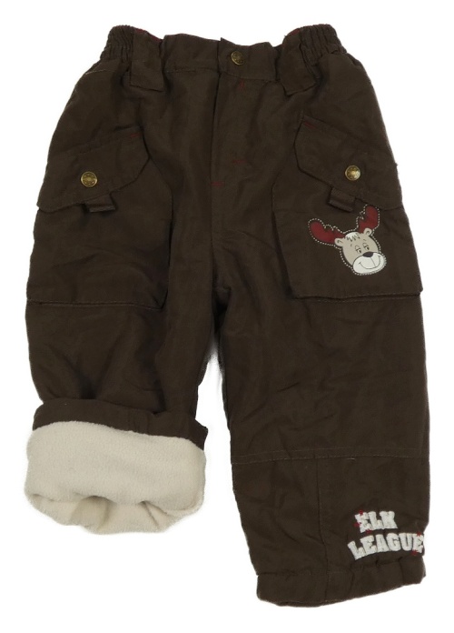 Tmavohnědé šusťákové podšité kalhoty s losem