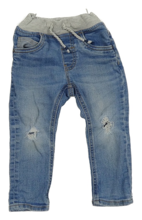 Modré rifle s úpletovým pasem a dírami na kolenou C&A