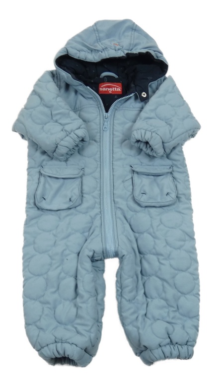 Světlemodrá šusťáková zimní kombinéza s kapsami a kapucí