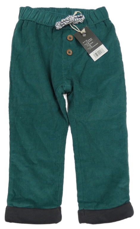 Nové - Zelené manšestrové podšité kalhoty s knoflíky Kuniboo