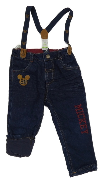 Tmavomodré podšité skinny rifle s Mickeym a kšandami C&A
