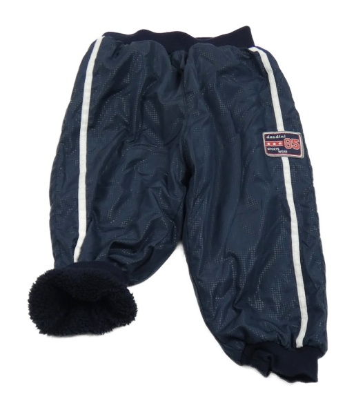 Tmavomodré šusťákové zateplené kalhoty s nášivkou