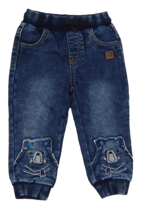 Tmavomodré cuff teplákové rifle s medvídky a úpletovým pasem so cute