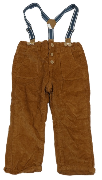 Hnědé podšité manšestráky s kšandami