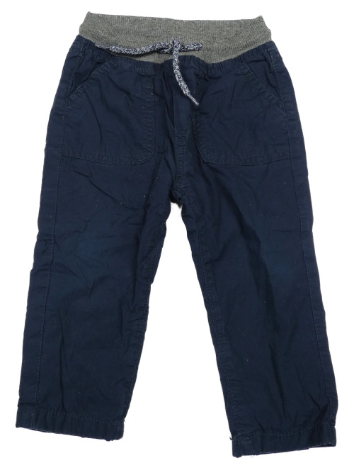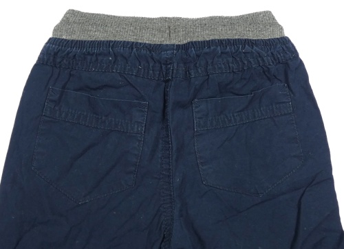 Tmavomodré plátěné podšité kalhoty s úpletovým pasem