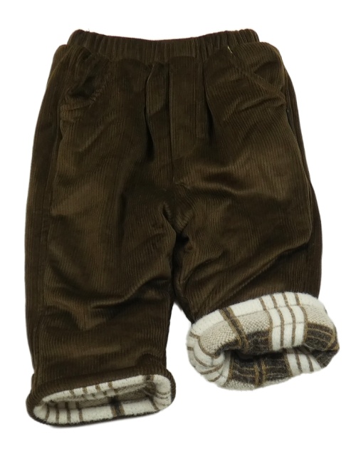 Tmavohnědé žebrované sametové zateplené kalhoty