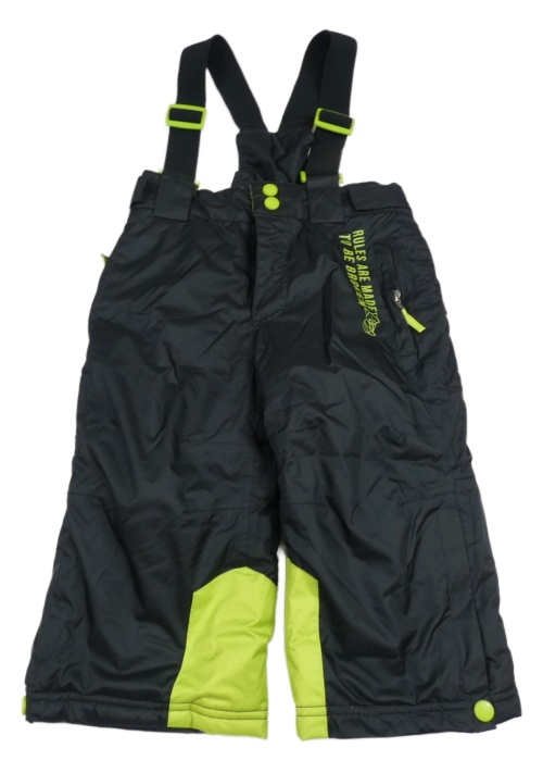 • Černo-limetkové kostkované šusťákové zimní oteplovačky s nápisy a liškou a kšandami Kiki&Koko