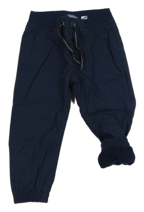 Tmavomodré cuff plátěné podšité kalhoty s úpletovým pasem lupilu
