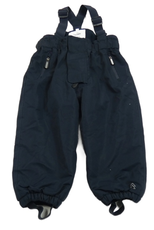 Tmavomodré šusťákové zimní oteplovačky s kšandami Topomini