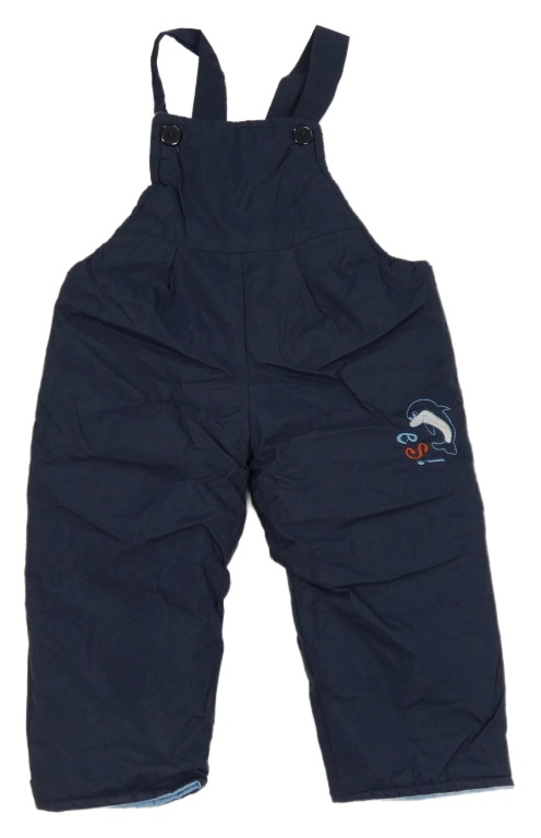 Tmavomodré šusťákové laclové oteplovačky s delfínem