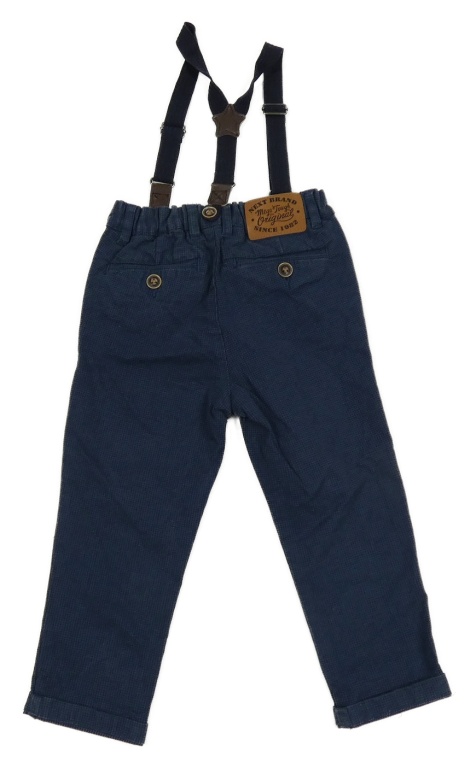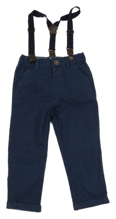 Tmavomodré kostkované plátěné chino kalhoty s kšandami Next