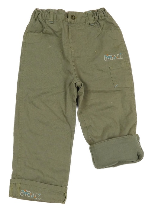Khaki plátěné podšité kalhoty s nápisem