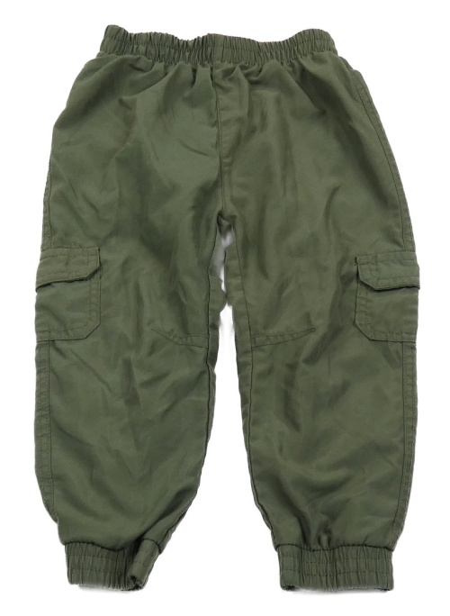 Tmavozelené šusťákové podšité cuff kalhoty s kapsami