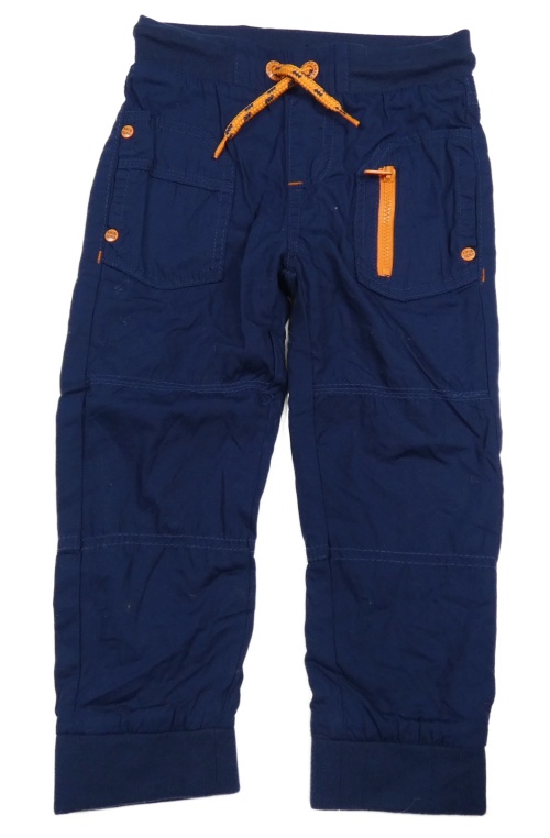 Tmavomodré plátěné podšité cuff kalhoty s úpletovým pasem Kiki&Koko