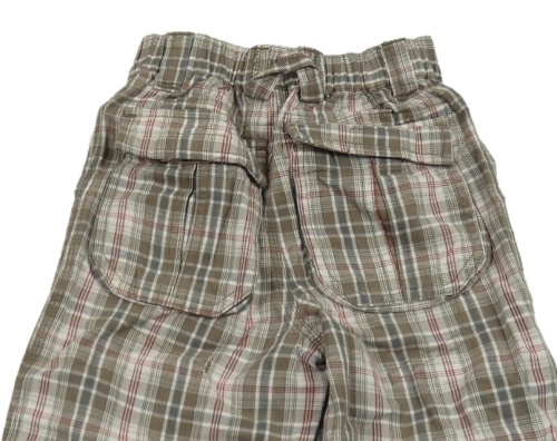 Bílo-béžovo-modro-červené kostkované plátěné kalhoty