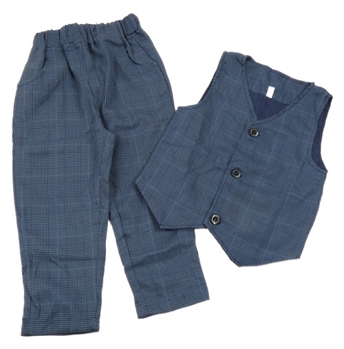 2 set - tmavomodro-modré kostkované kalhoty + tmavomodro-modrá vesta