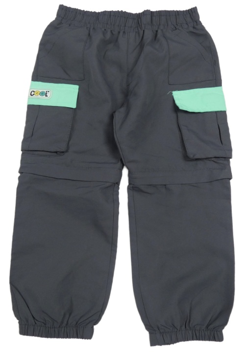Antracitovo-tyrkysové šusťákové cargo cuff kalhoty s odepínacími nohavicemi Kiki&Koko
