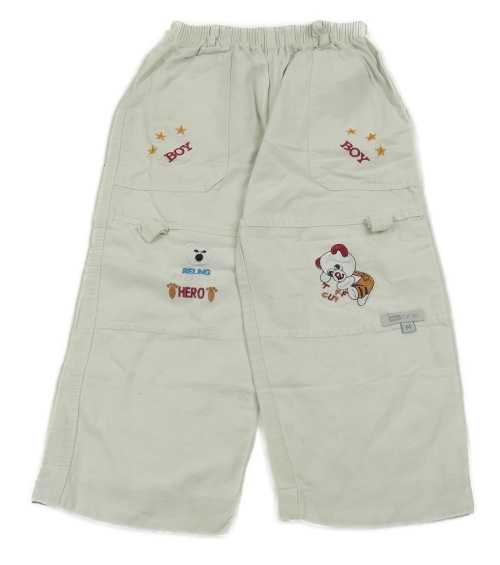 Světlebéžové plátěné kalhoty s medvědy a hvězdami