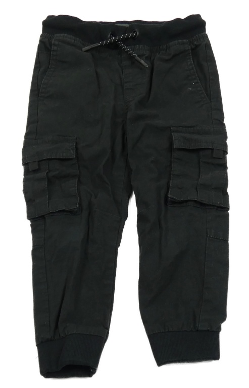 Černé plátěné kalhoty s kapsami a úpletovým pasem Denim Co.