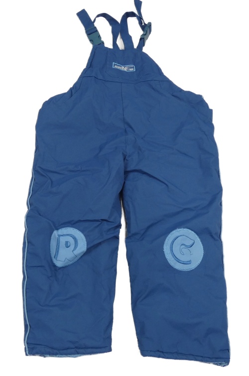 Modré šusťákové zateplené laclové kalhoty s nášivkou