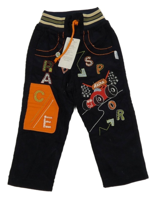 Nové - Tmavomodré manšestrové kalhoty s autem a písmeny