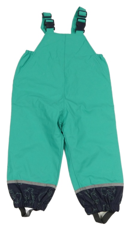 Zeleno-tmavomodré nepromokavé podšité laclové kalhoty s dinosaury X-Mail