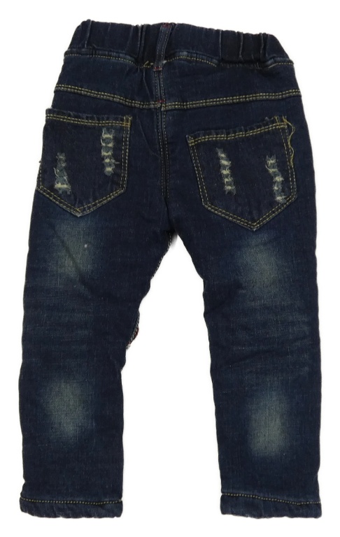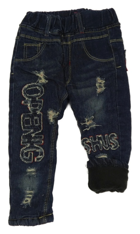 Tmavomodré zateplené skinny rifle s nápisy a prošoupáním