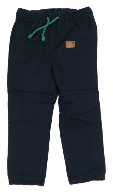 Tmavomodré plátěné kalhoty s kapsou a nášivkou