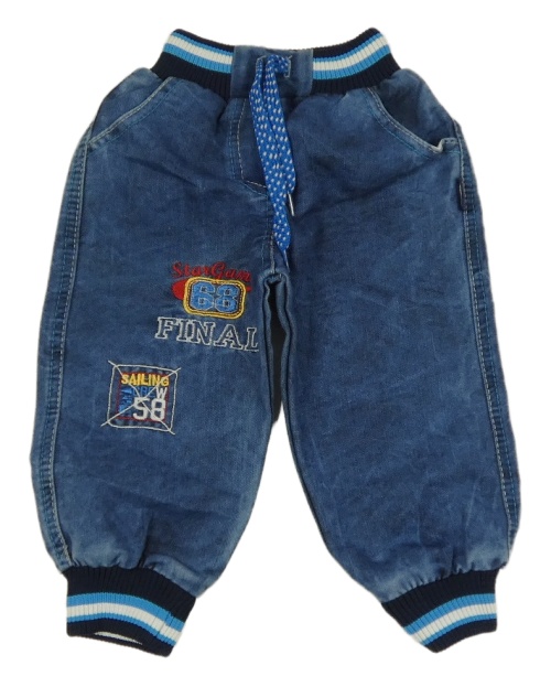 Modré lehké cuff rifle s výšivkami a úpletovým pasem