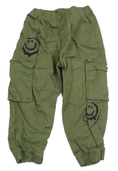 Khaki plátěné cargo cuff kalhoty se smajlíky Next