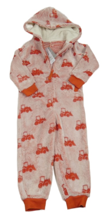 Nové - Červeno-bílá chlupatá kombinéza s traktory a kapucí George