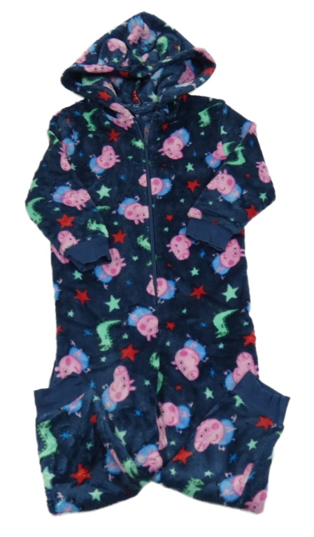 Tmavomodrá chlupatá kombinéza s Tomíkem a kapucí