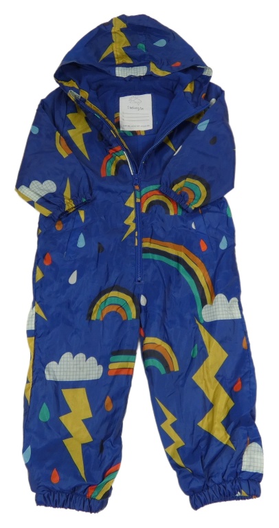 Modrá šusťáková lehce zateplená kombinéza s duhami a kapucí Tu