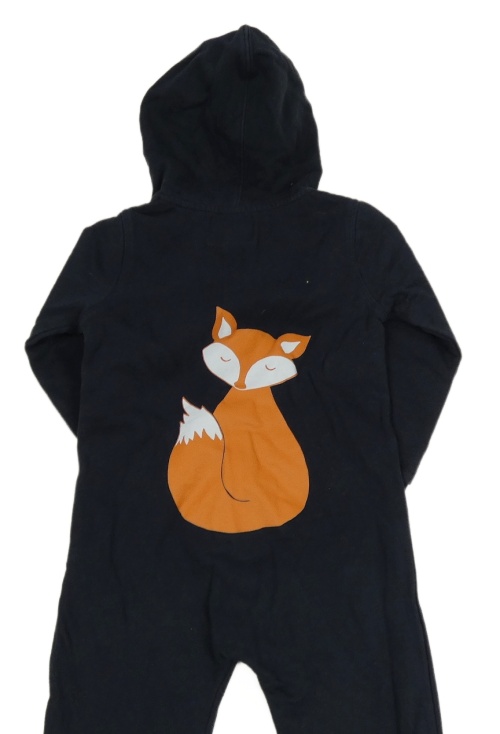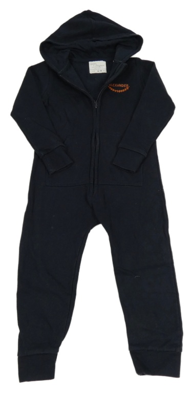 Tmavomodrá tepláková kombinéza s nápisem a kapucí