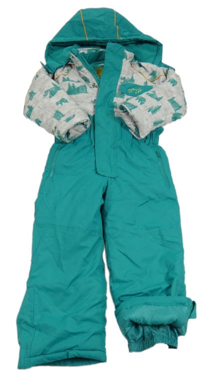 Šedo-zelená šusťáková zimní kombinéza se stromky a kapucí