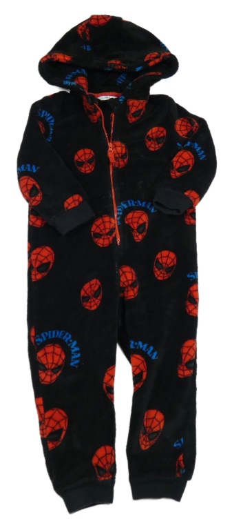 Černá chlupatá kombinéza se Spidermanem a kapucí M&S