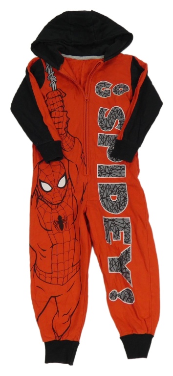 Červeno-černá tepláková kombinéza s kapucí a Spider-manem George