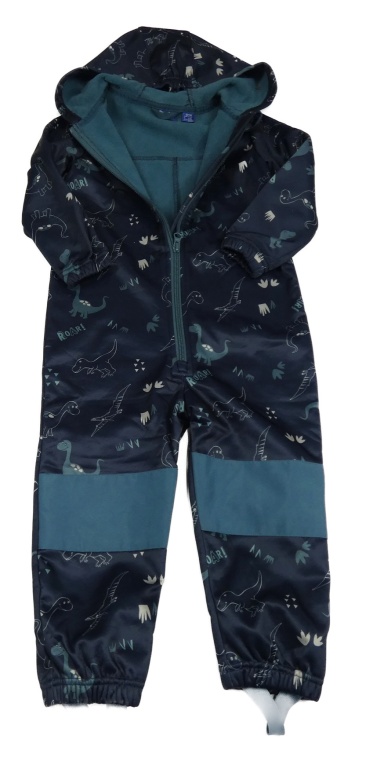 Tmavomodrá softshellová kombinéza s dinosaury a kapucí lupilu