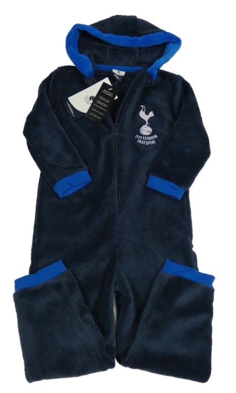 Nové - Tmavomodrá chlupatá kombinéza s nášivkou a kapucí