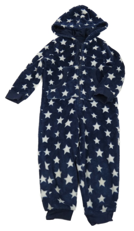 Tmavomodrá chlupatá kombinéza s hvězdičkami a kapucí M&S