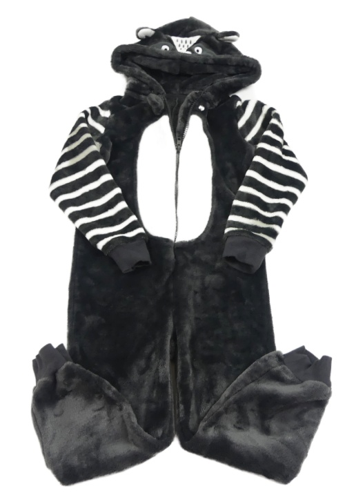 Tmavošedo-bílá chlupatá kombinéza s kapucí - mýval Matalan