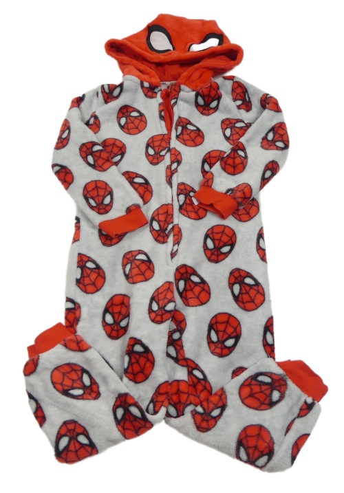 Světlešedo-červená plyšová kombinéza se Spider-many a kapucí MARVEL