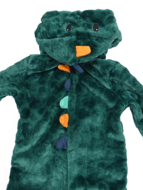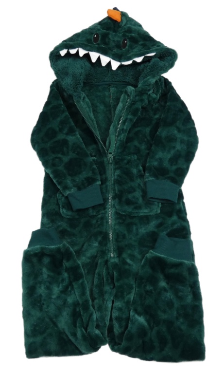 Tmavozelená vzorovaná plyšová kombinéza s ostny a kapucí - dino George
